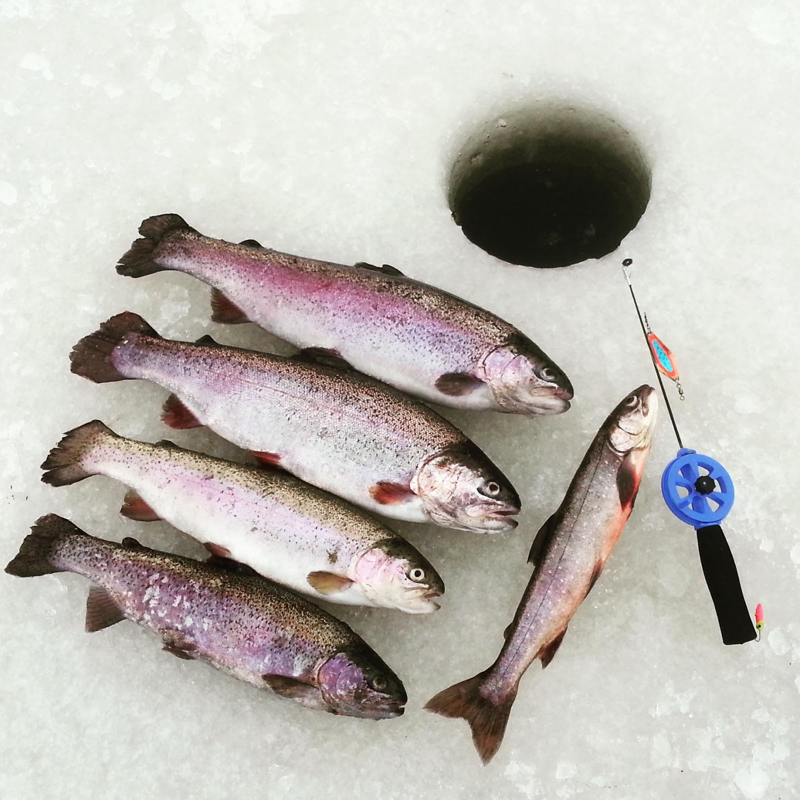 Har blivit ett gäng pass i tjärnarna nu i januari. Blandat resultat, men över lag hyfsat fiske. Idag var det dock bra fart i fiskarna. Fyra regnbågar & en röding landade + tre tappade regnbågar & ett gäng röding & regnbågshugg, blev det för mig och min fiskekamrat. En av de tappade regnbågarna va i fin kaliber.