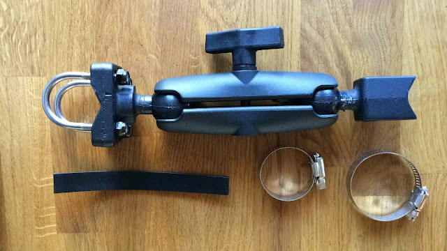 Imidlertid er ikke jeg heller rent lite utstyrsfreak, så da jeg fant ut at RAM Mounts har ferdige løsninger til formålet måtte dette sjekkes ut nærmere.