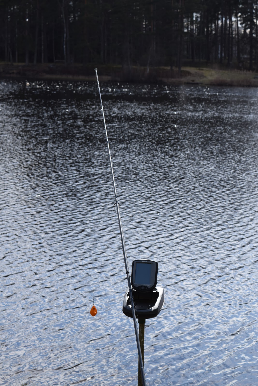 Berkeleyspöet används för att känna på bottnens utseende och även för att SmartCast lodets givare och ibland räcker inte detta spö till för att nå ut och då använder jag givaren som flöte på mitt feature finder set - up.