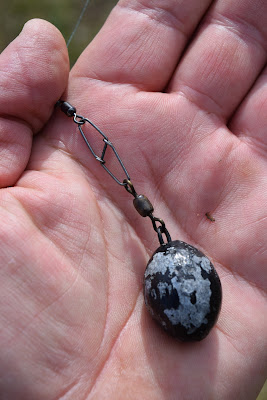 Jag använder även ett 100 grams bly som är bättre utformat för att kasta långt och ibland även tyngre bly. Jag letar features på samma avstånd som jag kan kasta och det är långt och spöet jag använder för att nå ut på dessa distanser är ett Wychwood Recon Marker på 12 fot och en testkurva på ca 4,5 lb.
