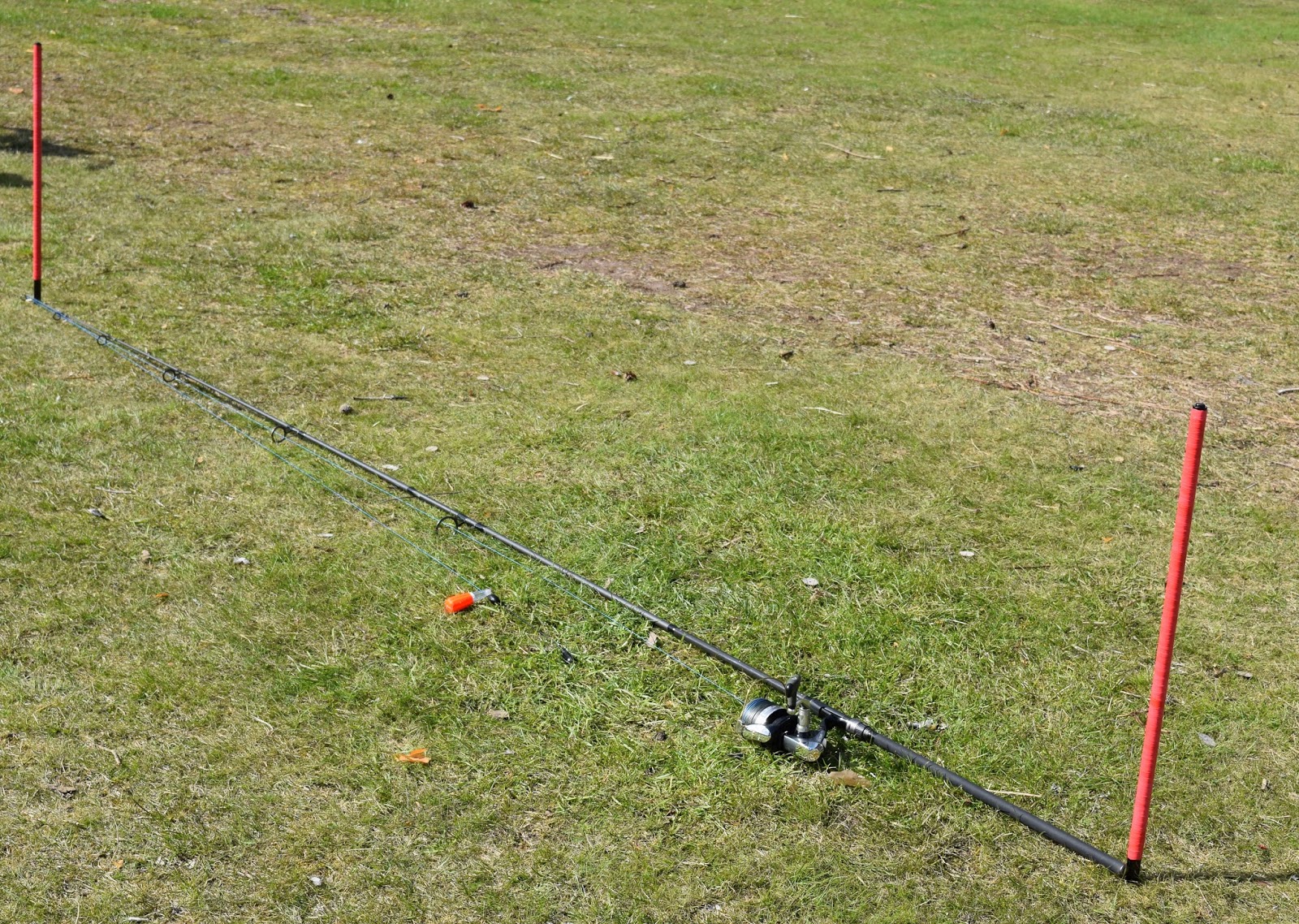 På detta sätt får du kunskap om avståndet till fisken och när du kommer för att fiska, så är det bara att lägga samma antal varv runt pinnarna och klippa upp spöna och du hamnar rätt.