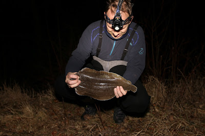 Det ble et speedwalking pass, hvor vi skulle sjekke ut noen plasser vi ikke hadde besøkt på over et halvt år. I følge vind, vær, tidevann og alt slikt skulle det være perfekte forhold for vading på disse plassene. Det var det ikke. For høyt vann, men KJS klarte allikevel å lure opp et par tunger i løpet av kvelden. Den største var rundt 1300g, noe som er grisebra. Glemte dog å ta bilder av den.