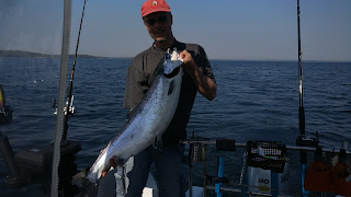 Upplevdes som mer trögfiskat jämfört med i onsdags, men lyckades till slut hitta en vandrare på 9,5 kg på ostsidan av tärnö
