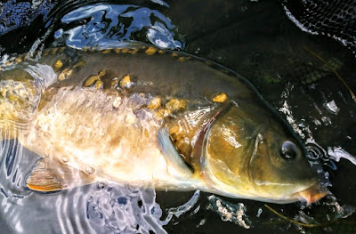 Tystnaden bröts under kvällen med ett back-drop och jag var på spöt direkt och gav sidopress direkt, men pulsen lade sig snabbt när jag kände att detta var ingen gräskarp och efter ett par minuter låg en spegel i håven.