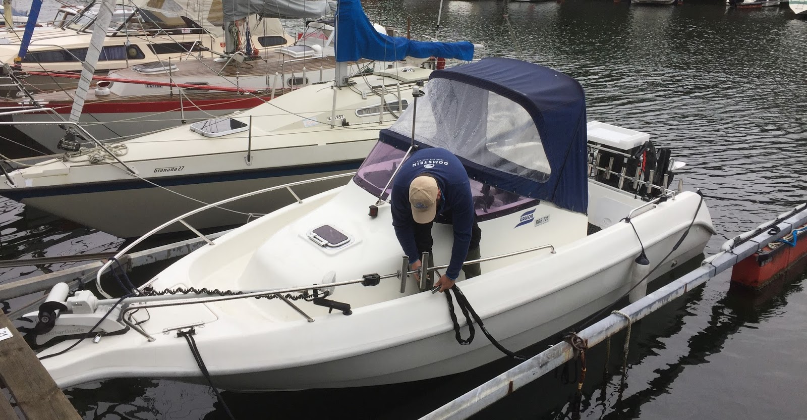 Carl og en kompis av ham kjøpte en brukt Galia 660 WA i fjor. Jeg har vært å kikket på den før, jeg elger meg ofte innpå når kompiser kjøper seg båt, men bare mens den stod på henger. Siden jeg aldri har kjørt en før var jeg nyskjerrig på hvordan den oppfører seg i vannet, og Carl ville jeg skulle ta en kikk på elektronikken ombord. Båten brukes primært til kyst- og havfiske og er utstyrt deretter.