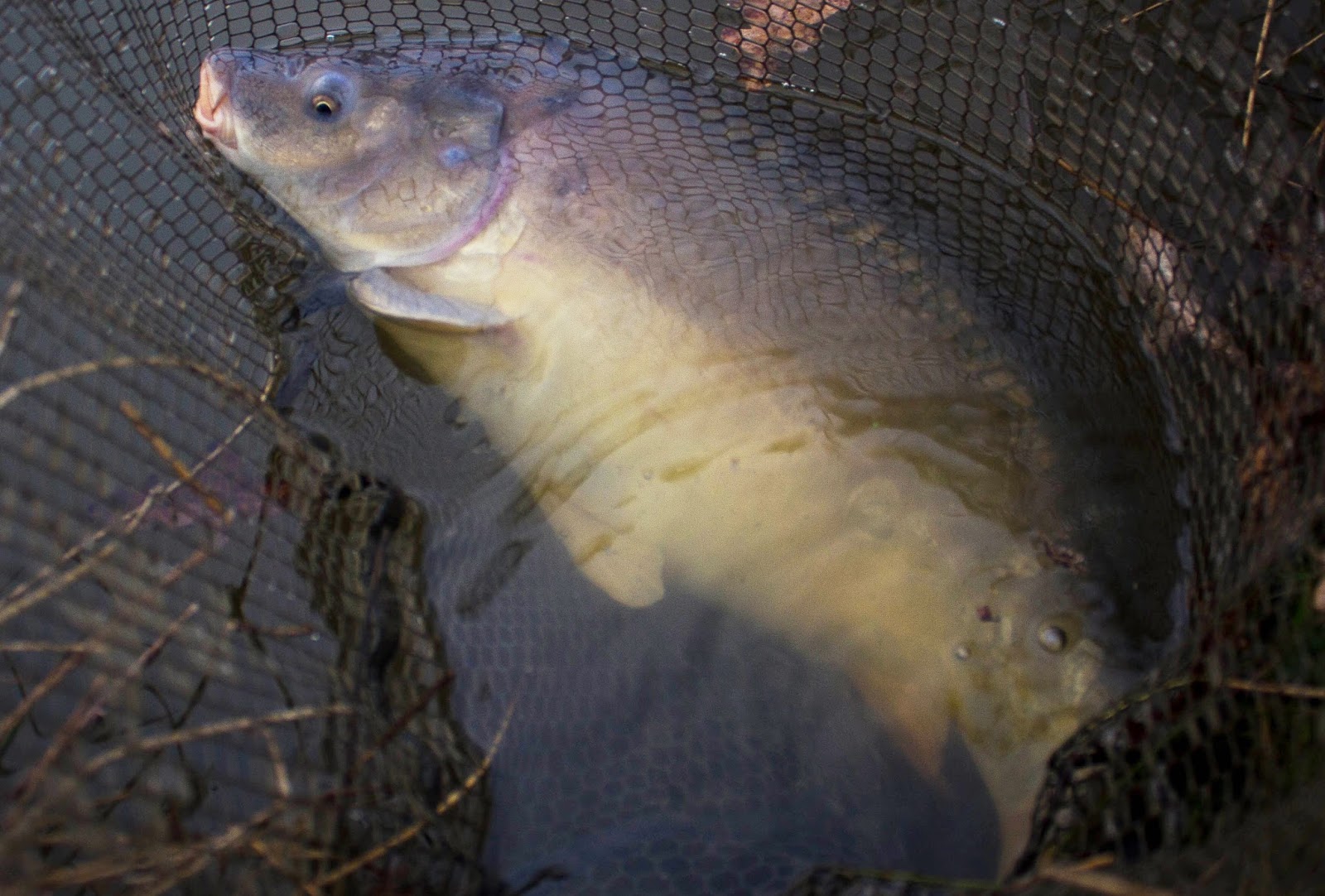 I runnet fick den tag i min andra rigg och cirkusen var i gång! Det hela löste sig genom att kroken släppte från karpens mun i håven och efter en snabb bild tippades den tillbaka och jag lämnades kvar med ett trassel. Thanx a lot!