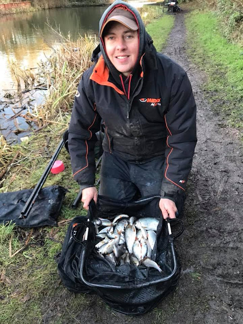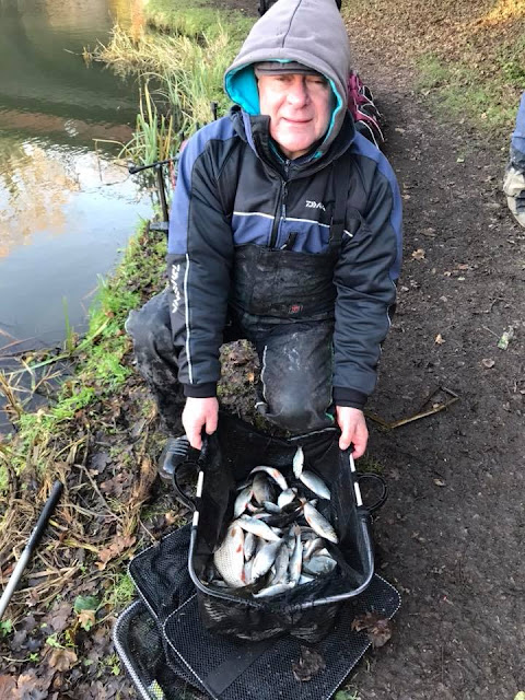 The weather was dam cold and the majority of the canal was frozen over. All the sections were used including the prolific Kilby Bridge length. I drew awful on peg31 , same peg as last year and same result expected but hey , thats fishing !