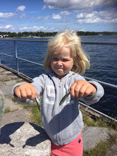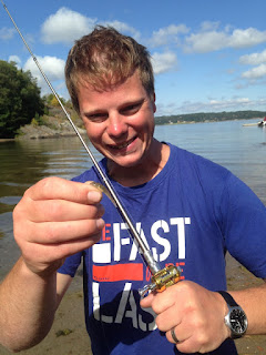 Mycket fint väder i början av juli gav också mycket fisk, här HG med ny art, årets enda faren.