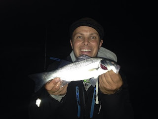 En havsabborre kom efterlängtat en kväll tillsammans med Rickard Hermansson utanför förbudsområdet i Bua.