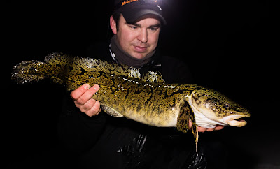 Morten på sin side har aldri fått lake før, så når det runna på en av hans stenger gav vi kjappe instruksjoner og hjalp til med å berge fisken. Jaggu fikk han ikke ny art for kvelden, en lake på 1110g. Grei start.