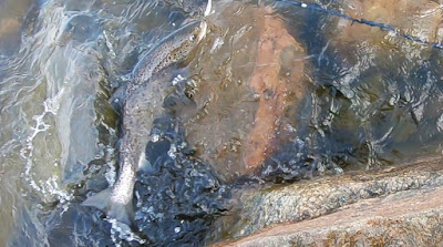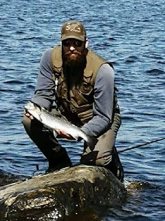 Fredrik skriver - Blev ett öringsrace mitt på dagen i för mig och farsan idag! Farsgubben hans fick 1 liten och hade 5 hugg. Jag fick 2, en runt 1kg och denna på bild runt 1.8 ca. och tappade en större runt 3-4 kilo alldeles vid fötterna Hade även 3 hugg och 2 som följde med ända in! Och en varsin rolig bifångst fick vi, id på ca 1.7 kg och en på 2.5 ca. Kanonväder med lätt bris