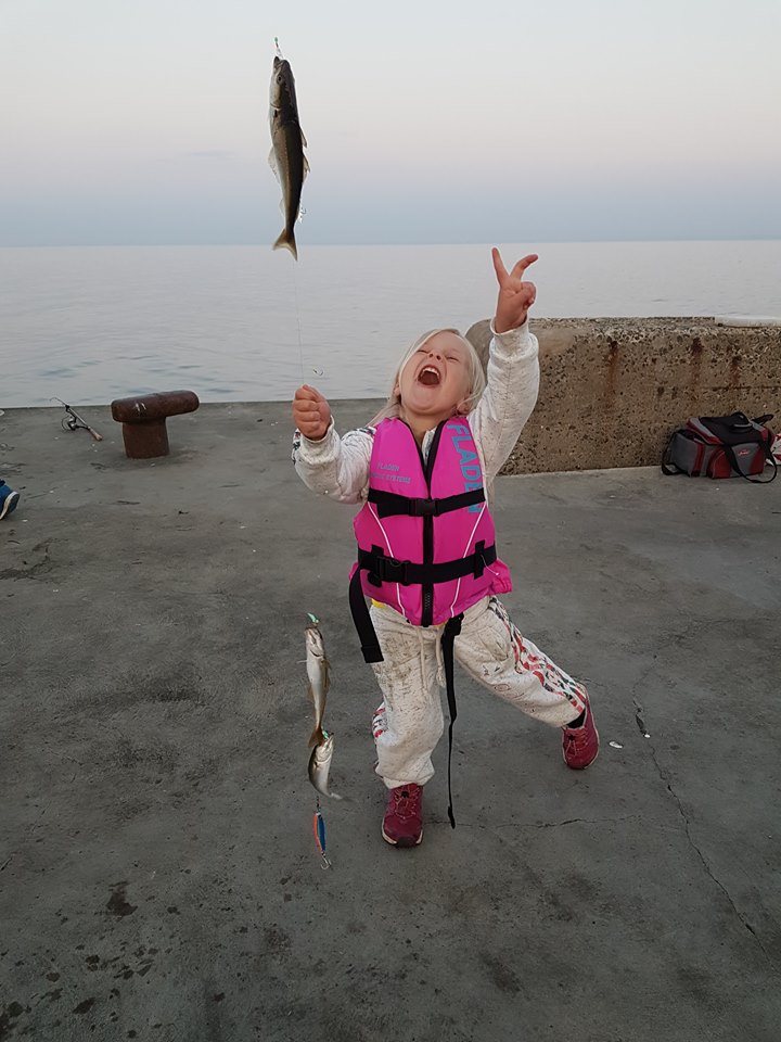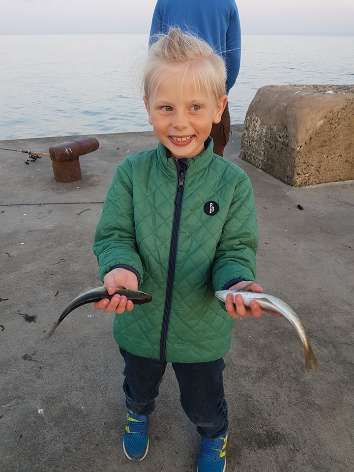 På 2 timmar tog vi över 70 sejar, det var småsej mellan 1-3 hg.