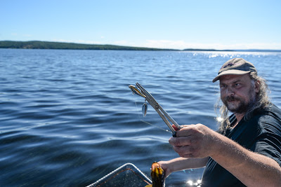 Fisket var annars ganska så trögt för oss. Vi hittade inte någon större ansamling av jagande fisk utan hade mest känning av ströfiskar som råkade gapa när betena for förbi. Inte heller hårdbetena fungerade för oss utan det var mer bottennära jiggande som gällde.