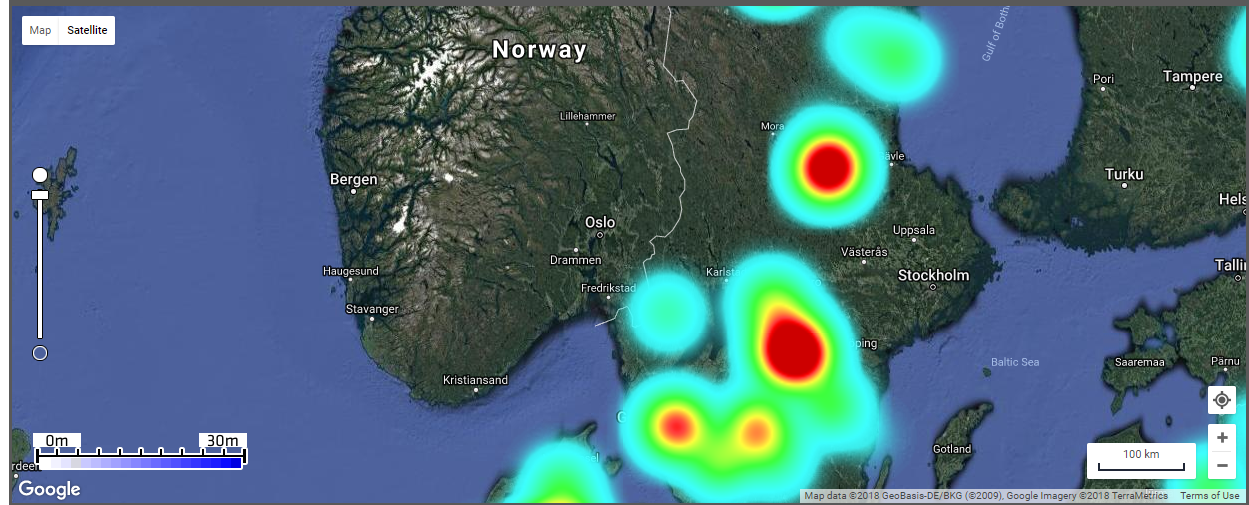 Zoomer man inn kan man se nærmere på dataene: