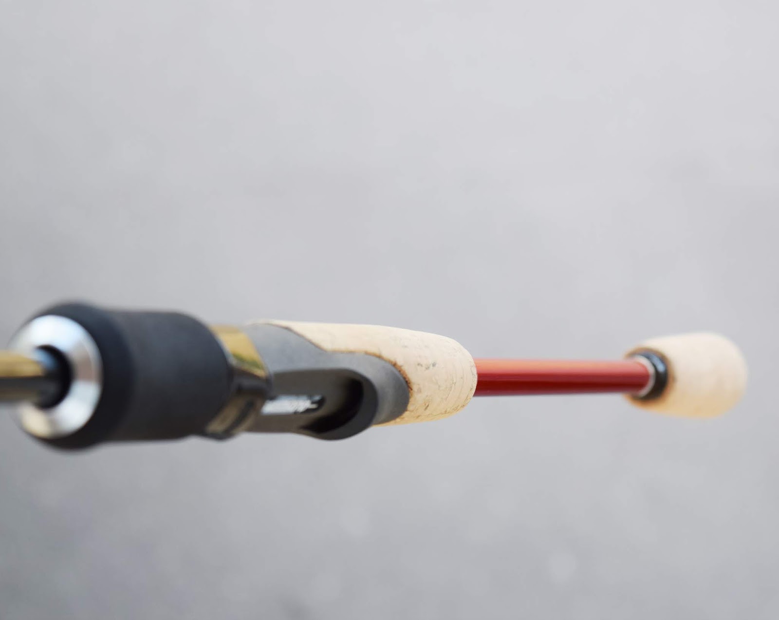 Väldigt bra rullfäste av typen Screw down som håller din rulle på plats och rullfästets utformning ger ett bra och stabilt grepp.Handtagets längd är 39 cm och det är delad som synes, den bakre delens kork är platt på ovansidan och det ger bra stöd mot underarmen under fiskets gång och framför allt under drillning av större fiskar.