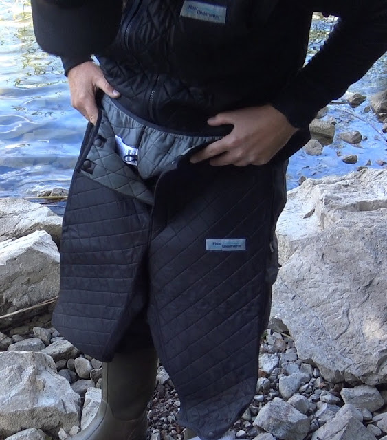 Jeg har også brukt klærne under vadebukse i elv og i sjøen. Der kommer buksa virkelig til sin rett! Materialet isolerer meget godt i tørr tilstand, og fungerer også supert som mellomlag mellom ull/fleece og vadebukse. I tillegg føles det godt å vite at jeg har plagg med oppdrift og flyteegenskaper når jeg står i elva. Alle som har falt eller snublet under vading vet at det er skummelt når lufta i vadebuksa løfter beina opp. Er det litt strøm i tillegg kan man fort få dårlig tid. Husk at vesten bør brukes for å sørge for å få overkroppen opp og hodet over vannet!