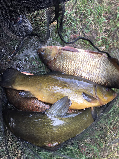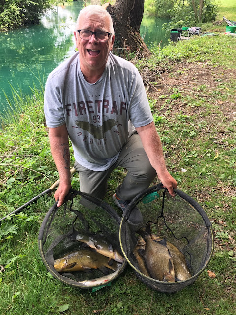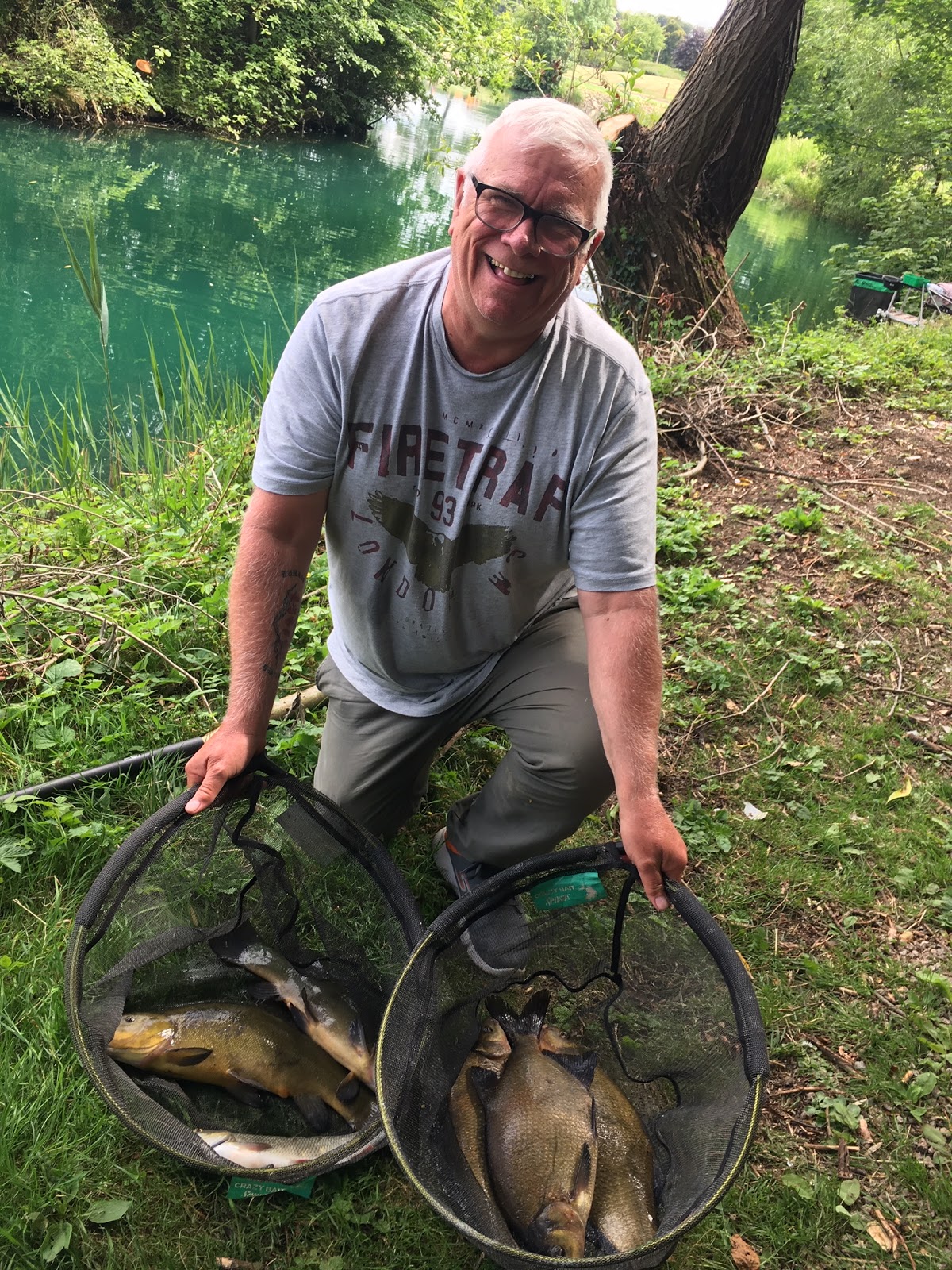 We had started fishing about 08:30am and by 10:00am Mick had a tench of about 3.5lb , a Bream of similar size plus some roach and Perch . I had managed 11 Ide on the bounce upto 1LB each and also lost a sizeable Tench . From then on till about 13:00pm i continued to catch a further 5 ide plus a big Hybrid and 2 Tench (4lb a piece) plus a Bream of about 3lb . I also had a spell of total Roach of up to 20 plus fish for about 5-6 lb .
