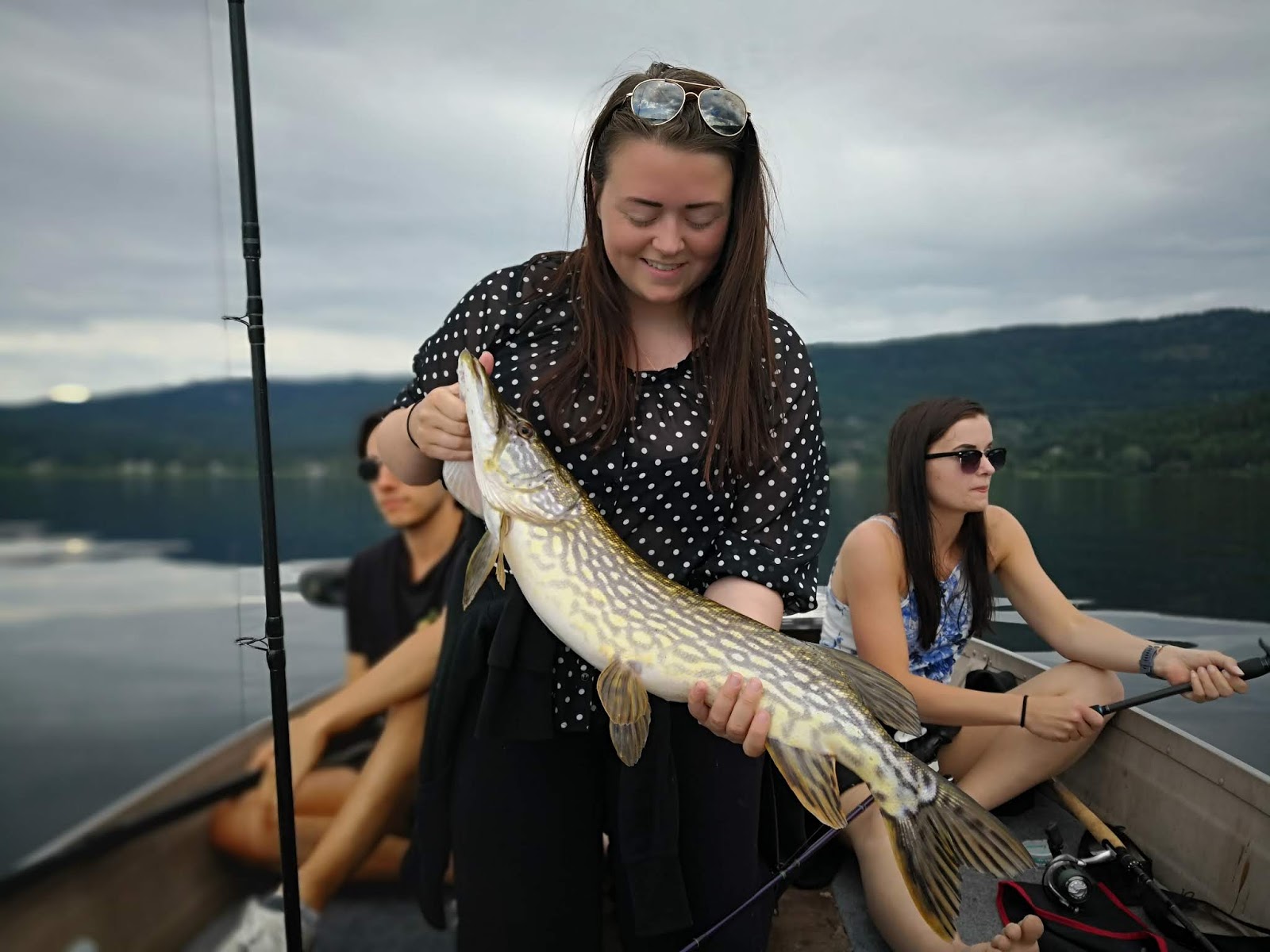 | Joda, det ble ett par korte dorgeøkter etter gjedde også. Lene trakk det lengste strået (noe hun gjerne gjør), mens Frederik og Stine følger med på paravanene. |