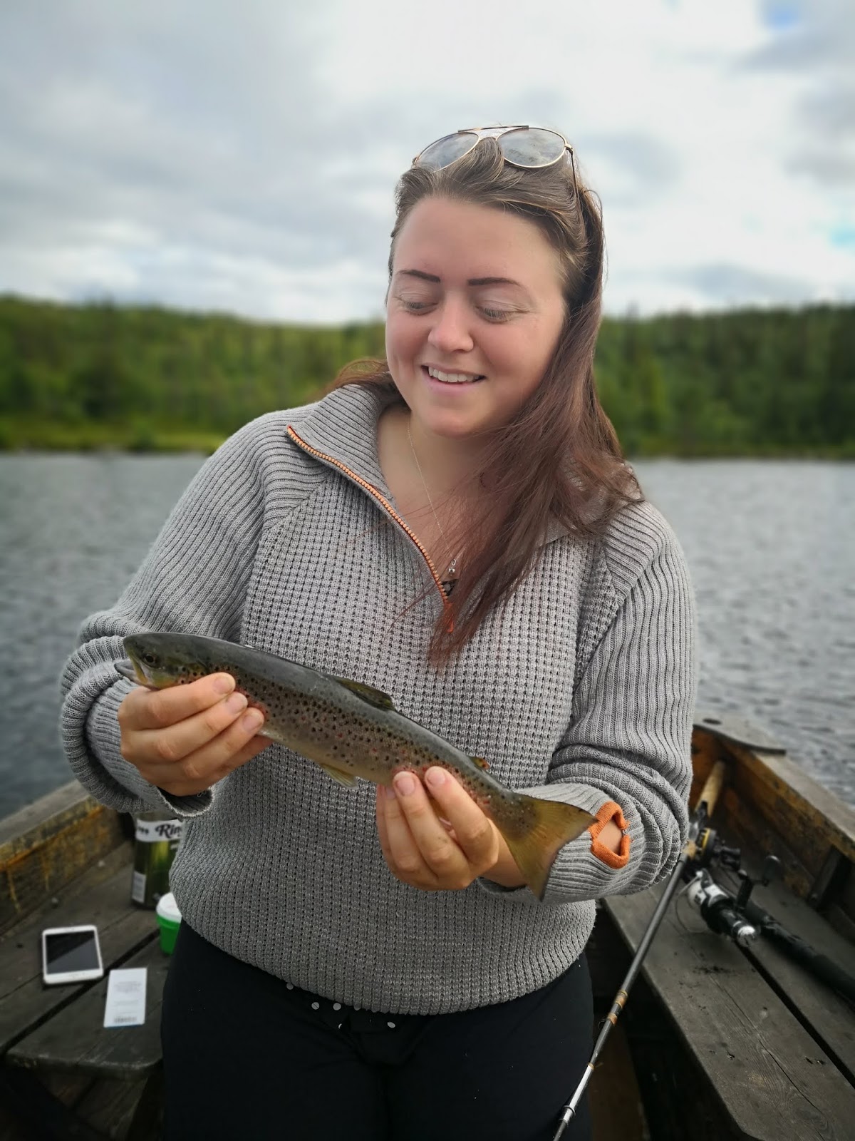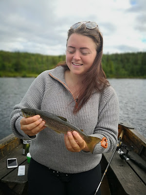 | Det ble ikke mye ørret på hytta. Lene fikk to mens jeg blanka. De havnet i steikepanna og smakte fortreffelig. |