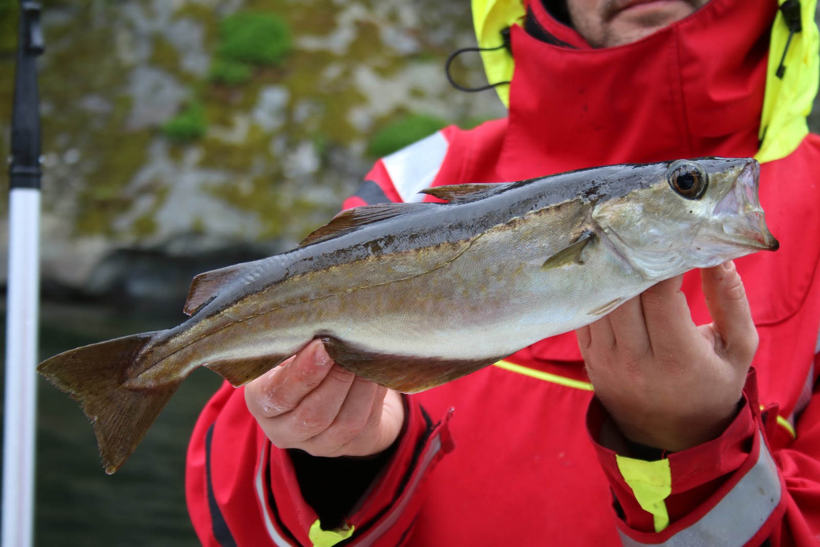 Vel fremme på neste plass satte vi igang å fiske etter berggylte og sypike. Berggylte ble det ikke denne gangen heller, men Kristian leverte ei lita sypike og vi kunne juble over art nr. 4. På neste plass fisket vi opp et par sypiker til og Fredrik landet til slutt den "største" av dem.