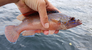 Upp kommer en knaggrocka! Conny dokumenterade med några snabba kort under tiden jag krokade loss fisken och släppte tillbaka den. Art nummer 96, nu börjar det närma sig 100!