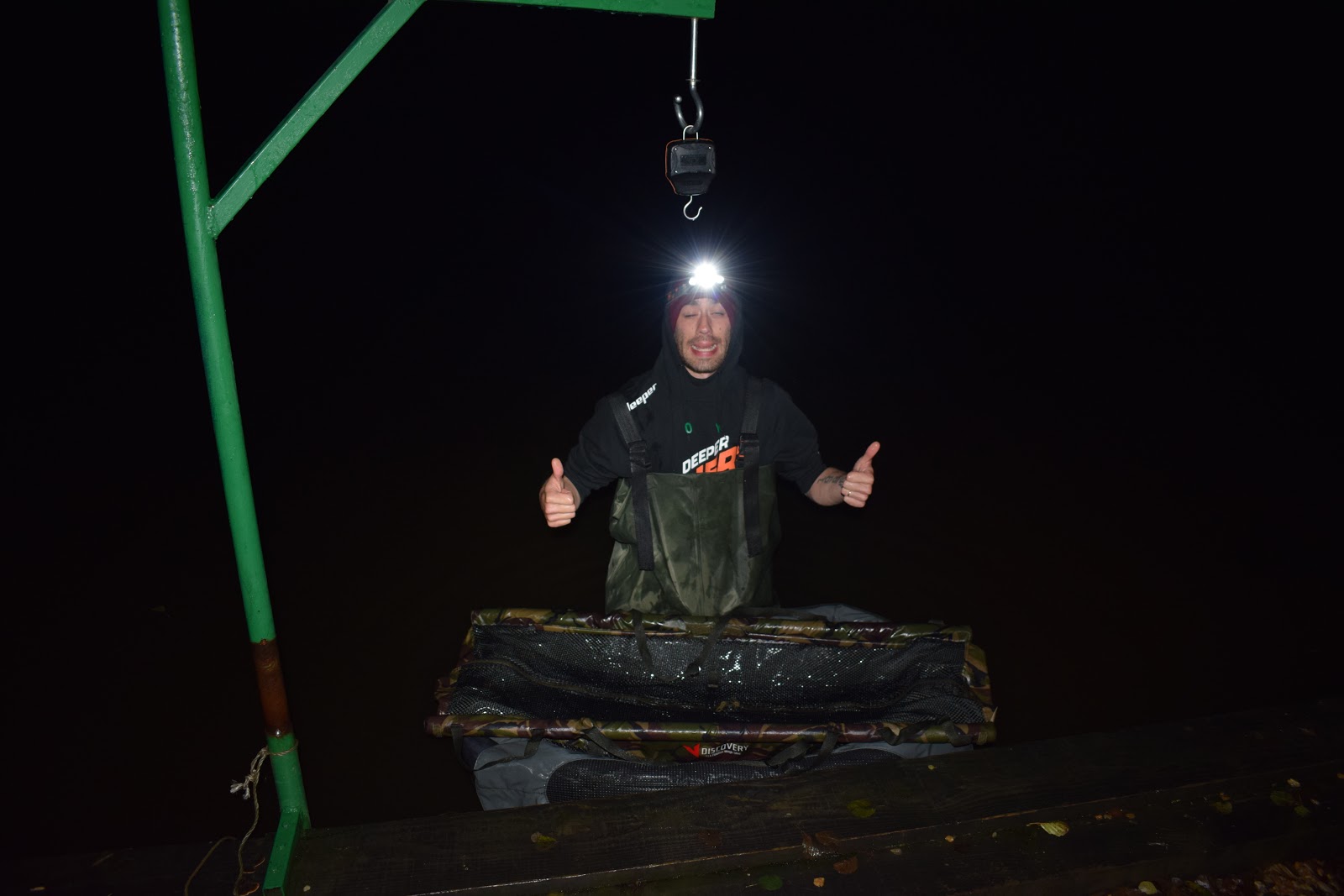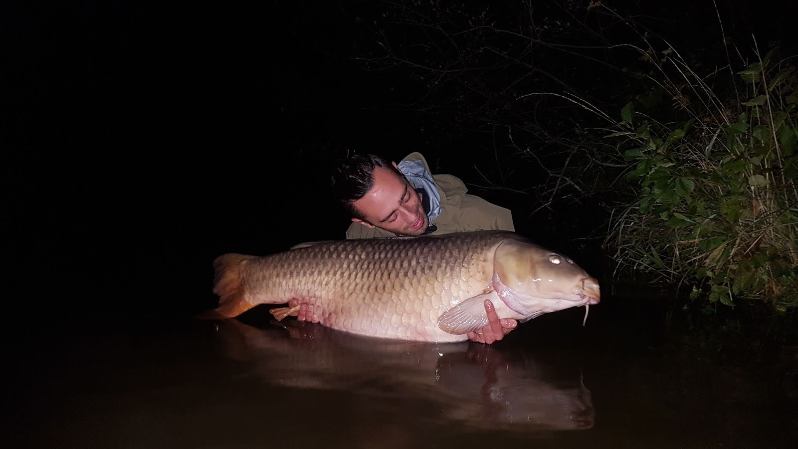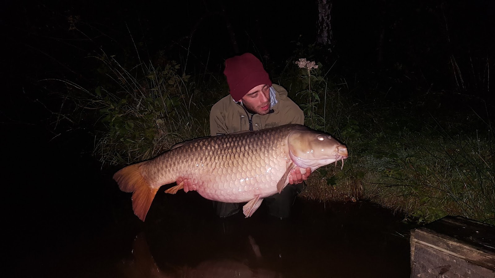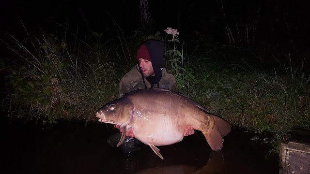 En grann fisk strax över 19 kilo vilket också var hans första franska karp, ingen dålig start och riktigt glad för han skull så vi firade med en whiskey innan vi kröp in i tälten igen.