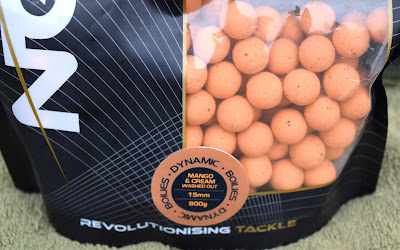 15-20 stycken 15 mm boilies från NGT´s fina range, spridd runt varje rigg och dagens val blev Mango and Cream i orange washed out färg, söta och fruktiga dofter gillar jag, när tempen sjunker i vattnet.