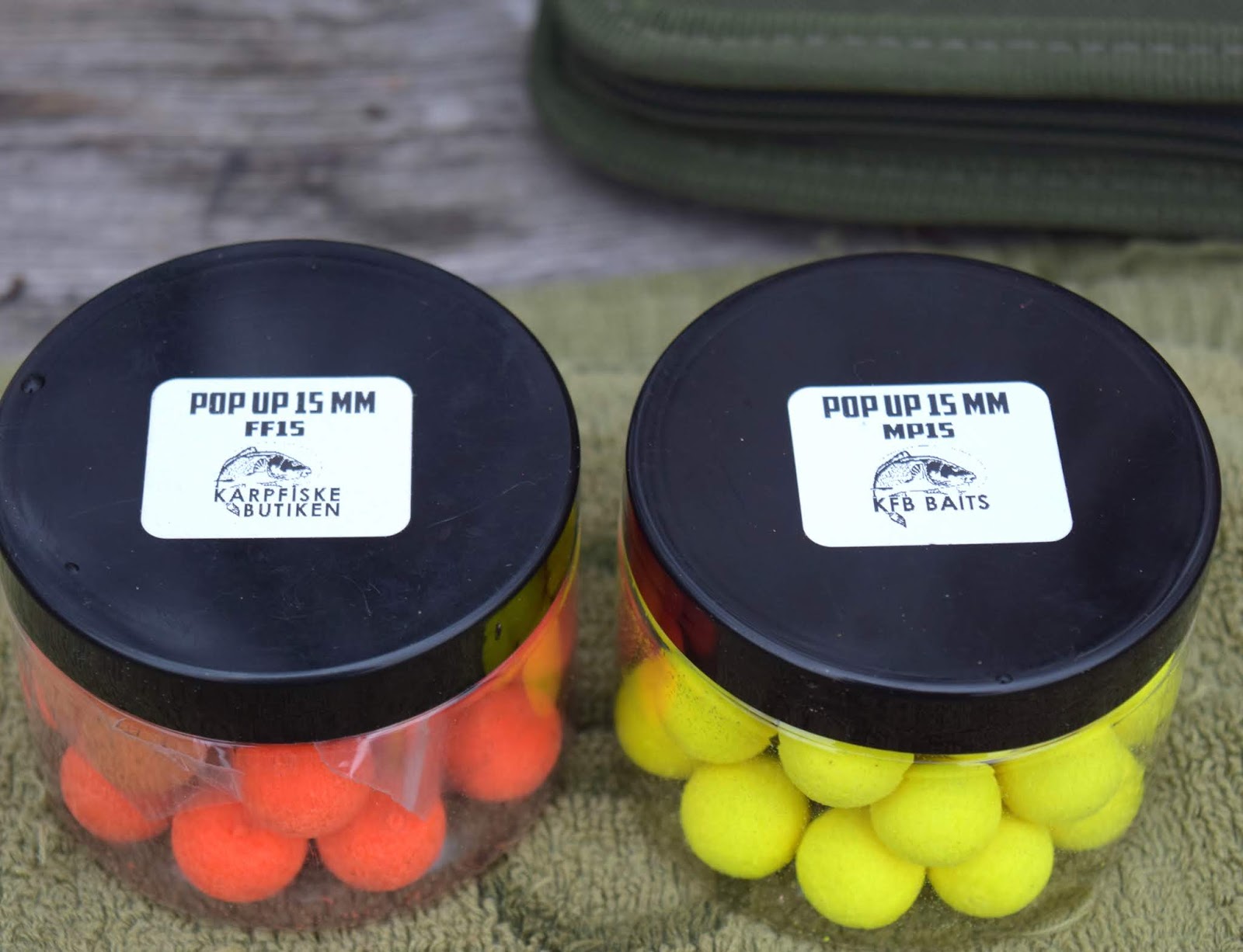 Mina beten för dagen var dessa pop-ups från Karpfiskebutiken, Fresh Fruit och Milky Pineappel, super fina beten som karparna gillar. Dessa på var sin rigg och en liten mesh bag med boiliecrumb på kroken och dessa bags fick två tunna strängar med Tandems Baits Speed Boosters.