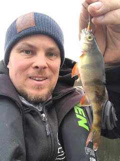 Efter att inte fått någon mer fisk på någon timme så bestämde jag mig för att leta efter abborre med pimpelspöt.