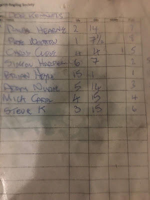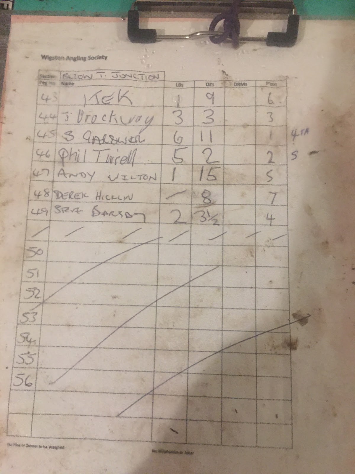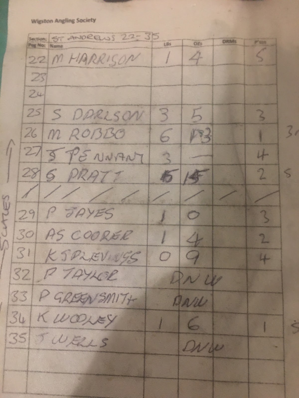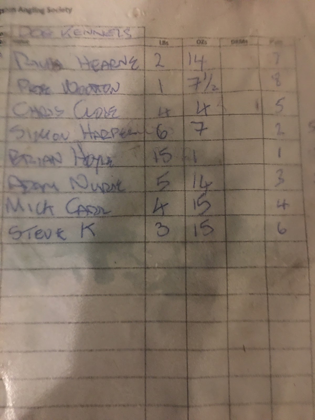 Simon Harper on peg 3 next to the bridge with a good weight of 6-7 and another brown envelope