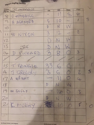 Storming catch from Brian Hoyle on peg 4 with 15-1 of Big Perch , two of them were 2-7 , there was 9 large stripey's altogether.