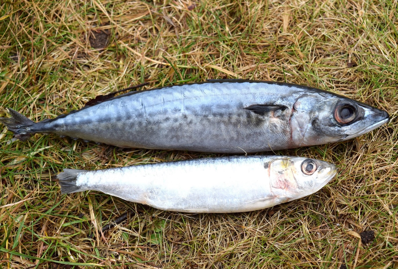 Som synes så är det stor skillnad på betesfiskarna vi använder i vårt fiske efter Gäddorna och här menar jag när vi metar dem. Bilden visar en Spansk Makrill överst och en Sardin, Makrillen är mera kompakt än Sardinen, båda har bra doft som verkligen attraherar Gäddorna till att smaka.