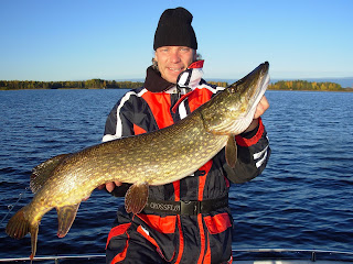 Så till höstfisket där jag även la in några semesterdagar och trots massor med tid så nådde jag inte bättre än en oktobergädda på 8,65kg och 103cm, tagen på min nya favvis Butch 21 cm! Det blev till slut 41 gäddor över 4 kg och fyra st tyngde vågen över 8 kilosstrecket. Det kom dock upp två större gäddor i min båt, 9,85 och 9,23kg men den ena tog min brorsa och den andra tog en arbetskamrat som var med ut, så guida kan man...