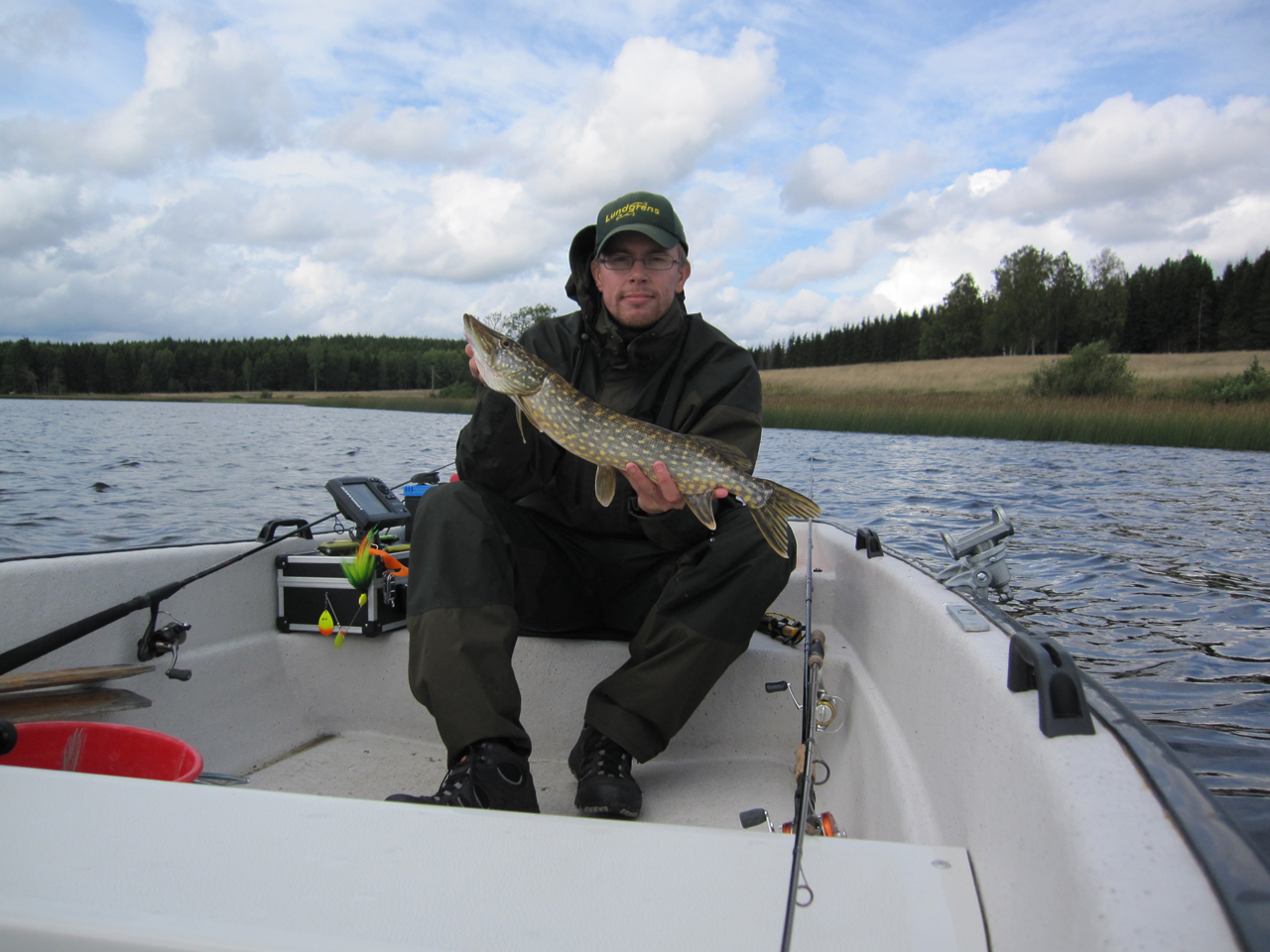 Bytte till de vanliga gamla betena och då började fiskarna komma upp direkt. Dagens vinnare på antal gäddor blev som så många gånger förr en blå och silver Rapala Rattlin' Rap 8. Totalt för dagen blev det åtta gäddor men inte en endaste abborre, lite ovanligt för Bredsjön. Ingen storlek på fiskarna idag heller men de allra minsta höll sig borta och de flesta låg mellan 1-2kg. Annars är inte flertalet på runt sju hekto ovanligt. Kanske beror på nymånen? Ska i alla fall försöka pressa in så mycket fiske som möjligt under det första kvarteret.