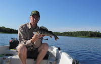 04:35 var jag ute på sjön som inte var riktigt spegelblank men inte långt ifrån. Underbar känsla att befinna sig på sjön så tidigt. Satte direkt kurs mot grundet som brukar leverera på somrarna och i första kastet med min Super Spook Junior högg en skaplig abborre på 0,44kg. Mitt redan goda humör blev ännu bättre och jag tänkte att nu kommer jag få uppleva en riktig abborrbonanza här på morgonen. Det dröjde dock innan nästa abborre skulle få syna insidan av båten.