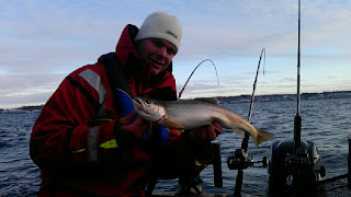 Det är full fart på rödingen idag, tyvärr så verkar det sämre på laxfronten. En lax har vi iallfall lyckats överlista.