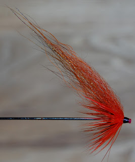 Jag har fortsatt med mina laxflugor denna helgen också. Jag har flyttat upp mitt flugbindande från källaren för en betydligt varmare och framförallt socialare tillvaro tillsammans med resten av familjen vid en bänk i köket. Jag saknade ett par rävsvans bitar i litet mörkare nyanser av färgerna "Fiery Brown" och "Burnt Orange" Så lite färgande har det också blivit.