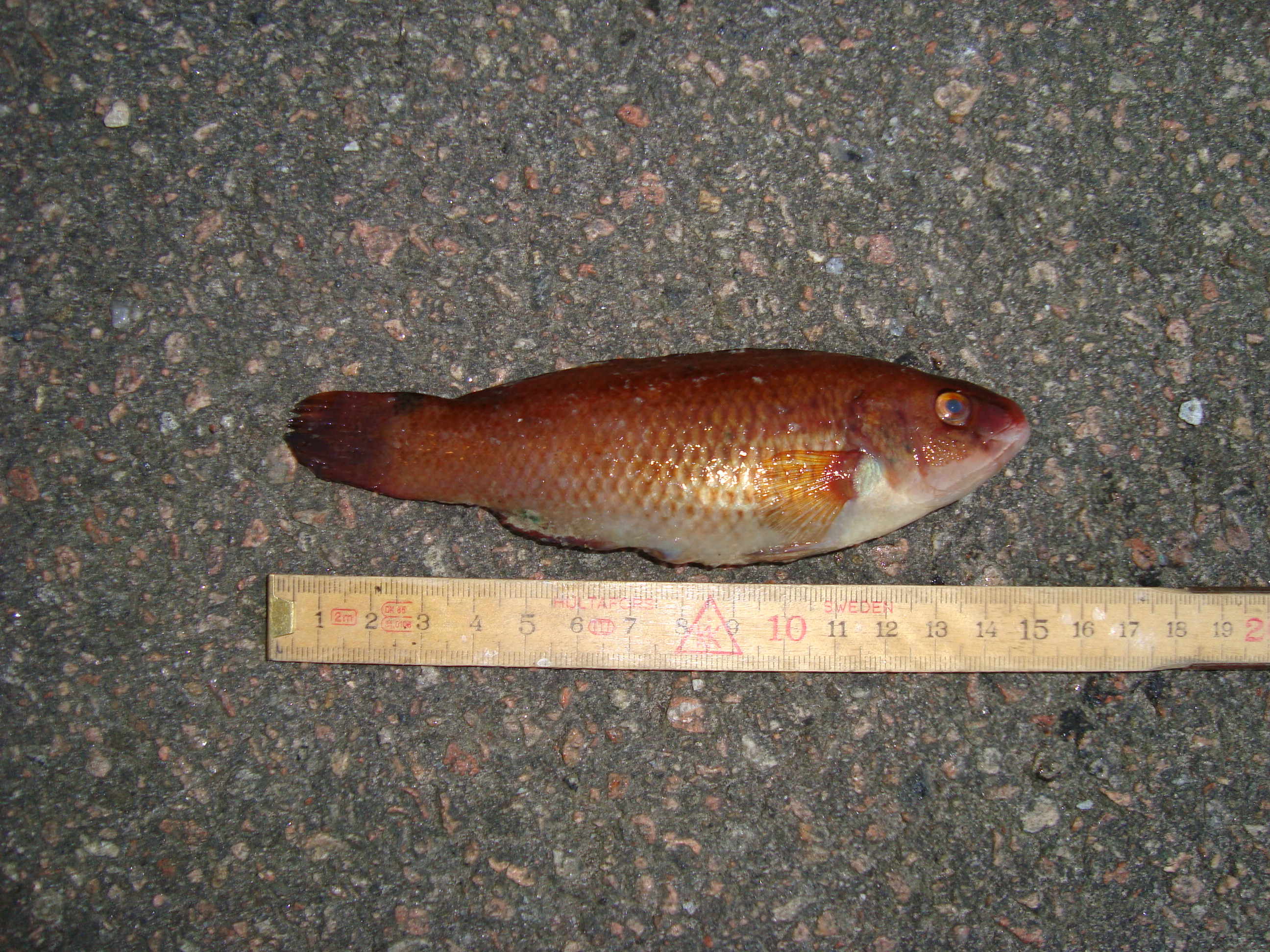 Fångade denna lilla röda fisk i havet utanför Halmstad. Vad är detta för art?.