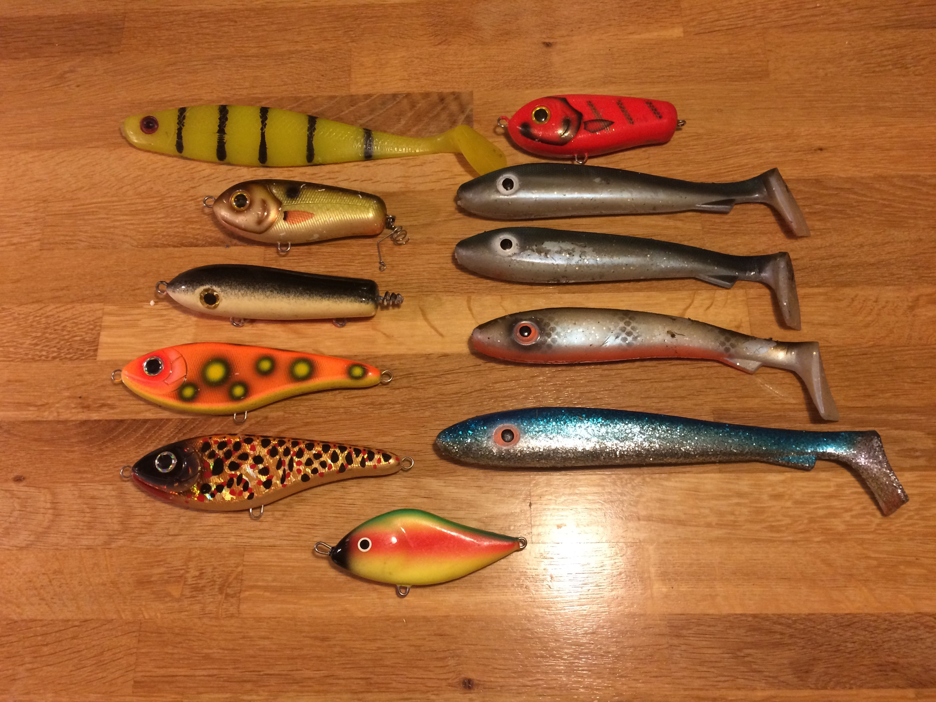 Grejorna är slitna och använda men fungerar som de ska. Bustrarna, wolfcreektailarna och den hemmamålade Mctailen är shallowviktade, Salmon är sjunkande. Plast, plast och åter plast.