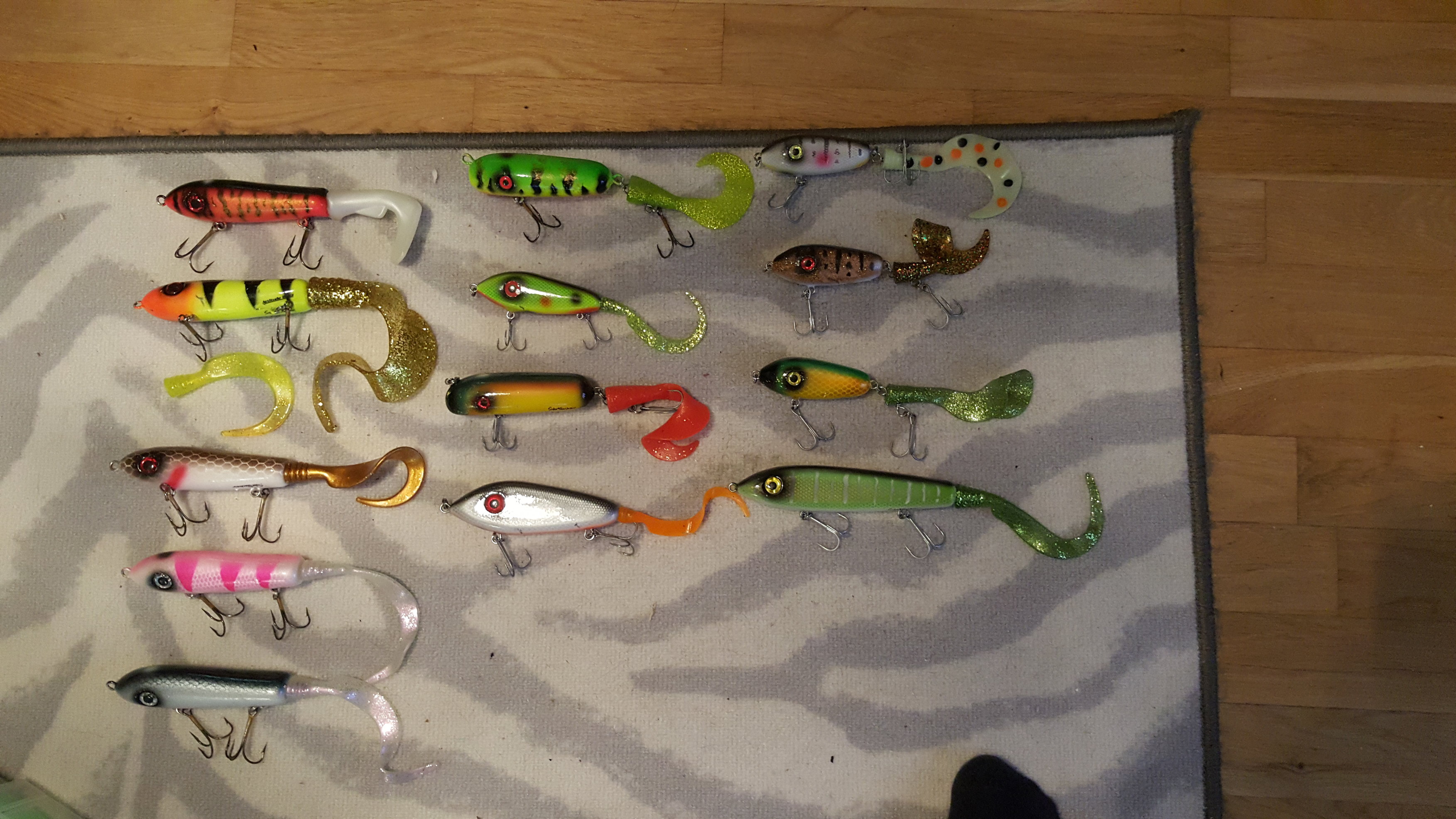 Vänstra raden består av mctail V2, samtliga beten på bilden är slowsink/shallow FÖRUTOM Svartzonker tail i firetiger färgen och McMio Papegoj då dessa är fast sink.