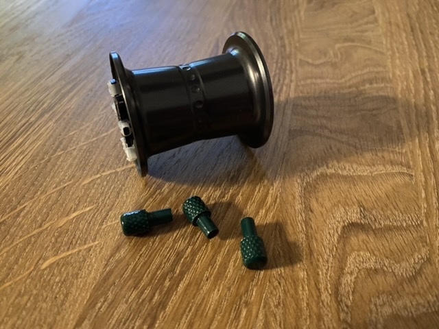 Grönemaljerade skruvar till ambassadeur vevgavel (från blackdogtackle). 60 kr inkl brevfrakt.