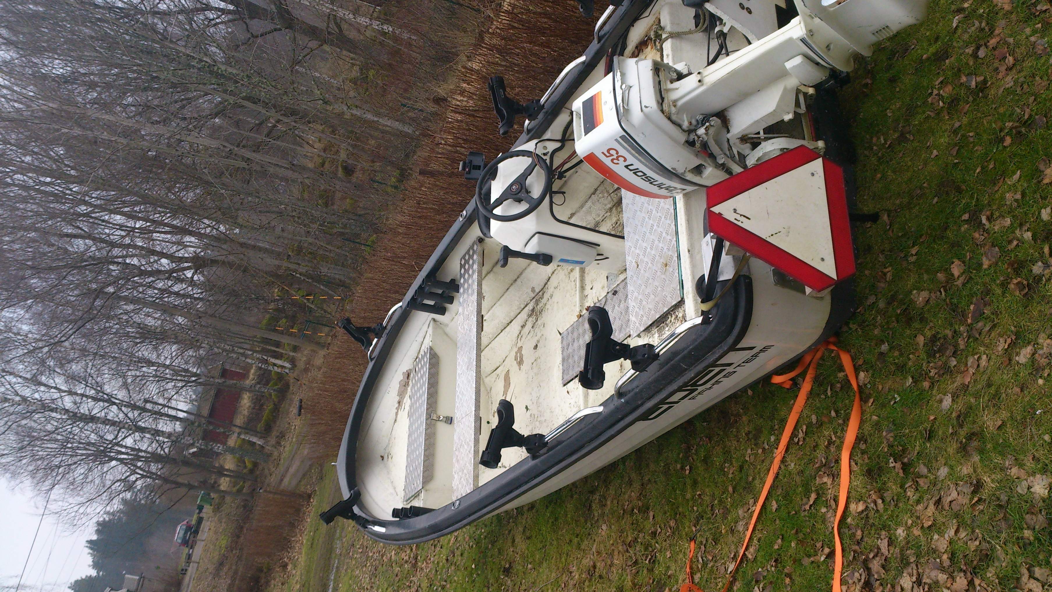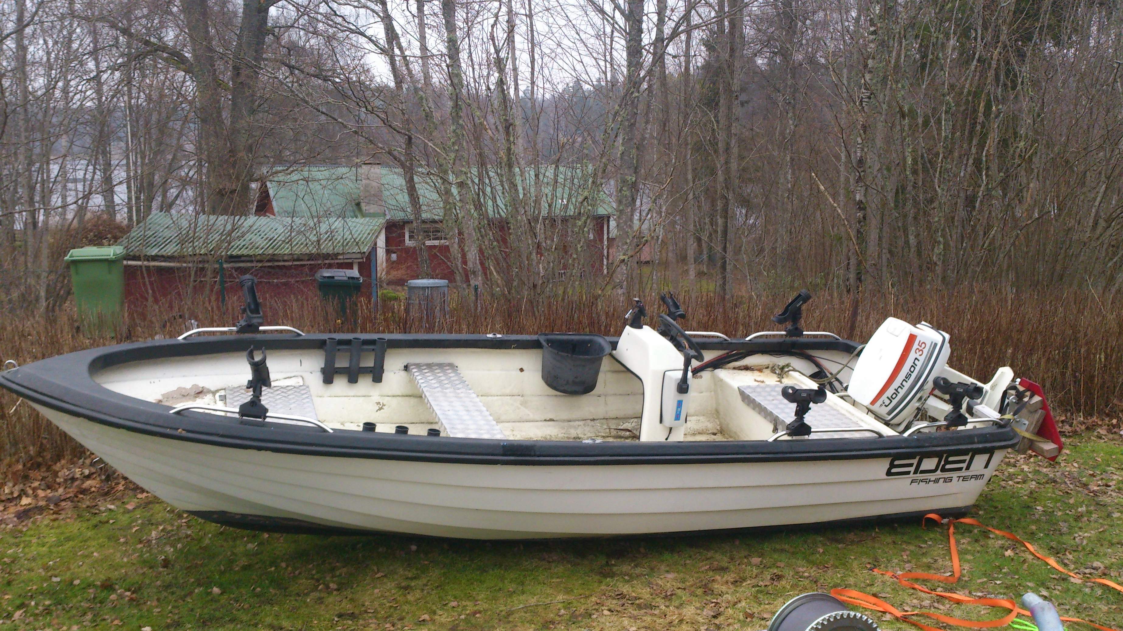 Har en båt, av okänt märke. Och tyvärr just för tillfället inte möjlighet till att mäta exakt längd. Men gissar på 4-5meter. Vikten är dock mitt stoar bekymmer, har verkligen inte en susning!