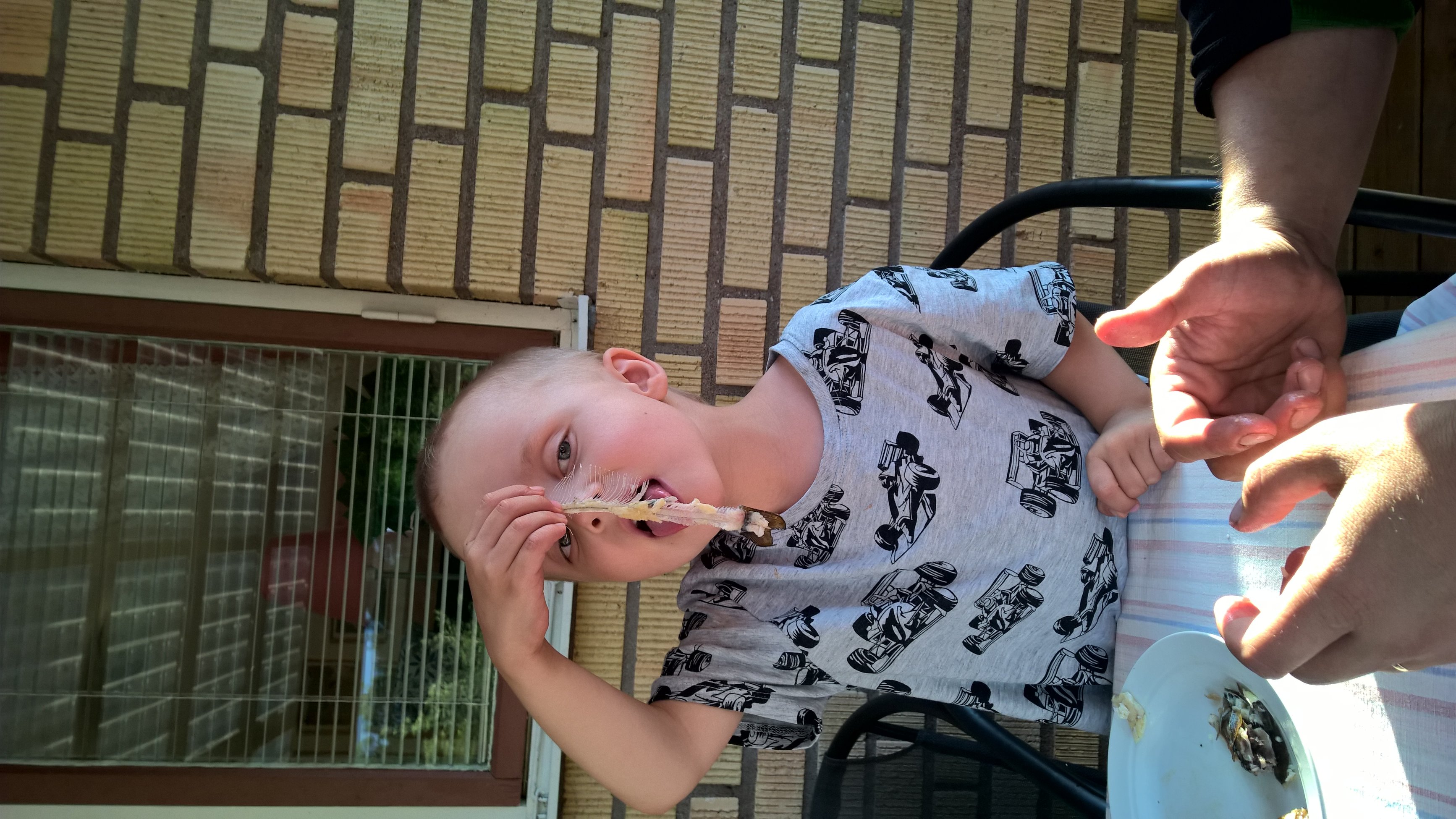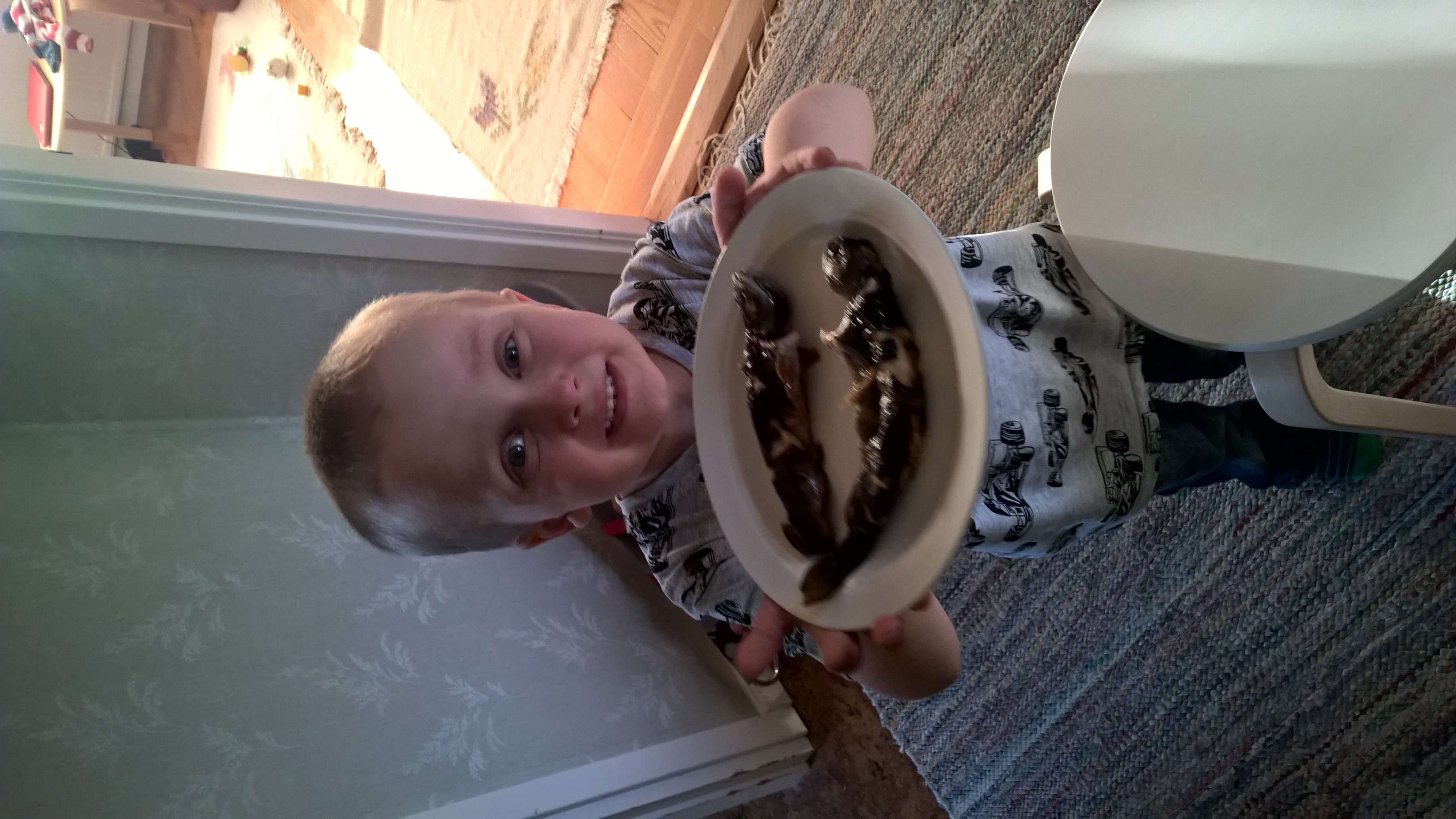 (den andra lilla fisken fick hans kusin på 3 år som äter fisk men aldrig sett vart fisken kommer ifrån och hur den ser ut innan panering. Så grabben fick äta 2 bäckrödingar)