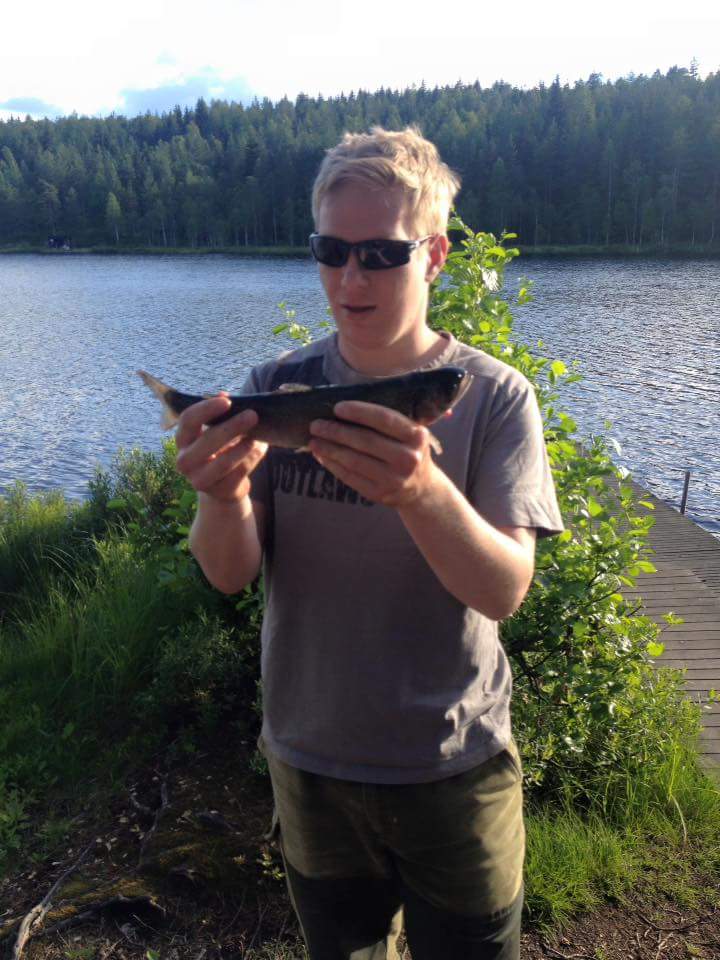 En sak finns de dock att rapportera, äldsta grabben fick sin första spinnfiske fångade fisk, en liten bäckröring. Den lyckan går inte att beskriva med ord. Ett gigantisk leende och ett glädjerop som hördes på långt håll. "JAG HAR FÅTT EN FISK !!!! Den ska jag äta". Hade inte mage och säga till honom att släppa tillbaka den, utan förklarade om han tar med sig den hem måste han äta upp den med. Bilderna berättar resten av storyn