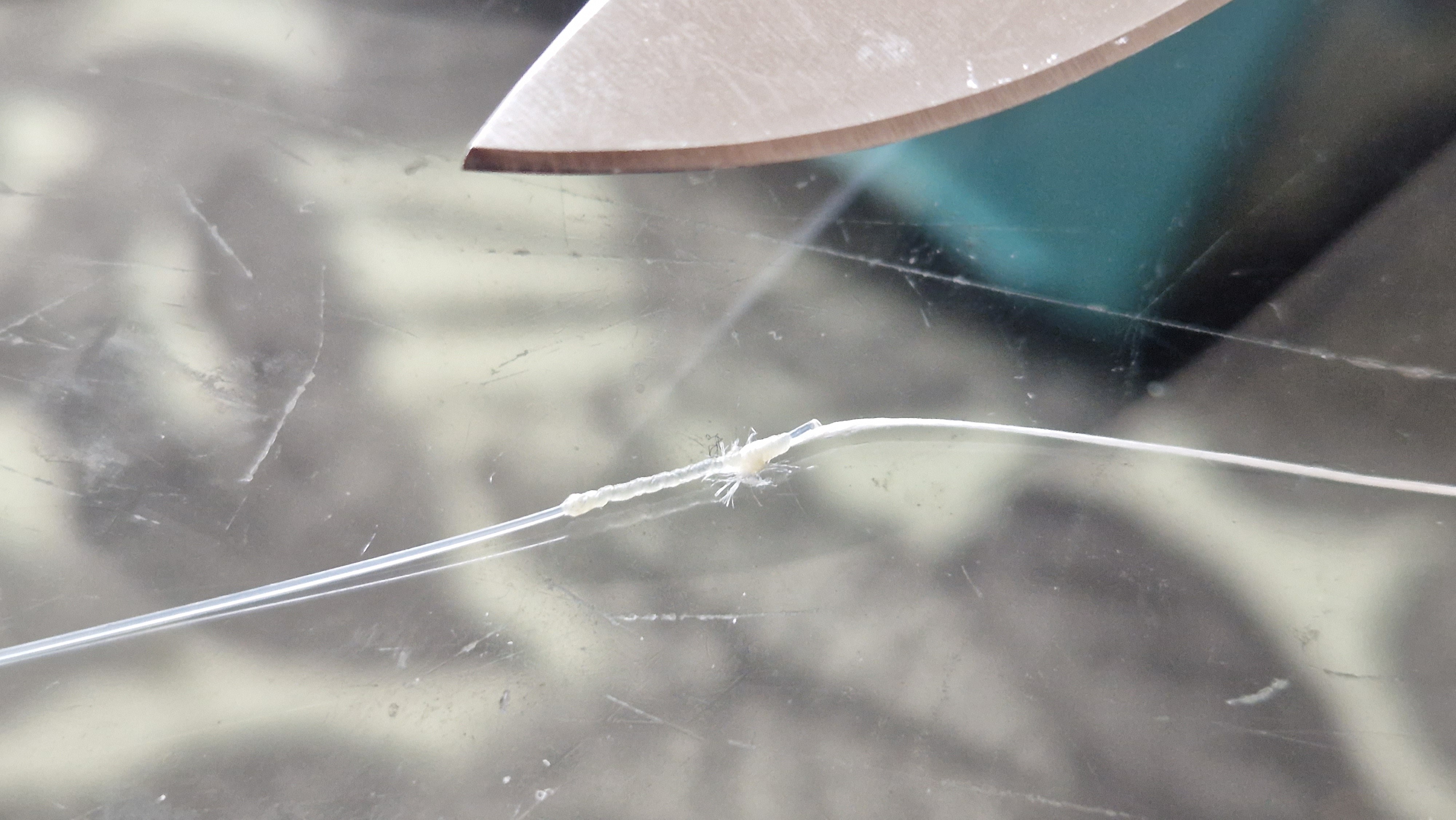 Totalt 20 varv här, man kan se att det inte nyper riktigt 100 men hyfsat längst till vänster i knuten (klicka/zooma bilden) och att man inte ska mecka på glasskivor...