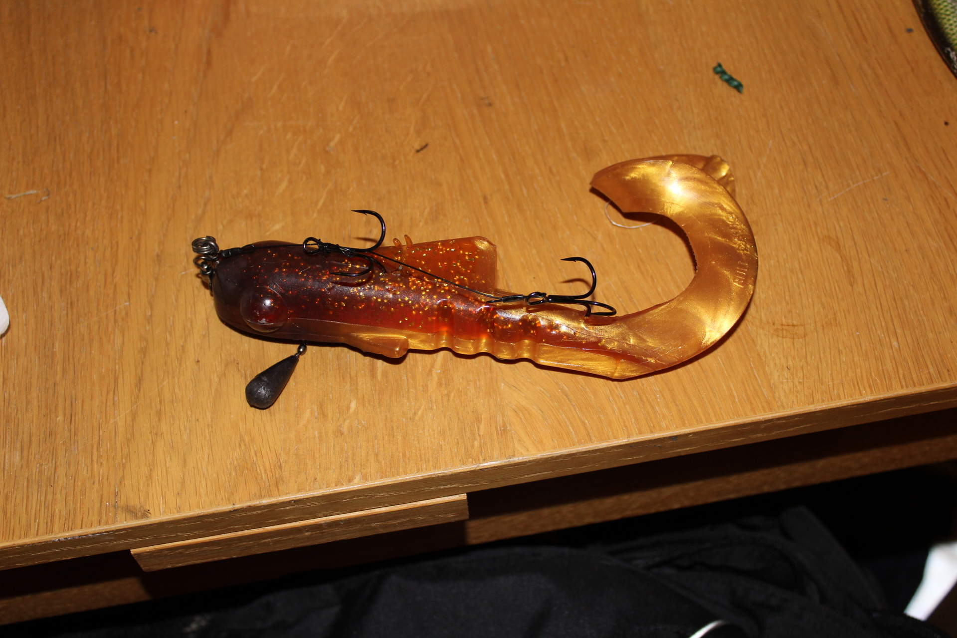 har olika riggar jag kan byta med. denna är storlek 1 på krokarna. sen har jag en omgång med stl 4 på krokarna.