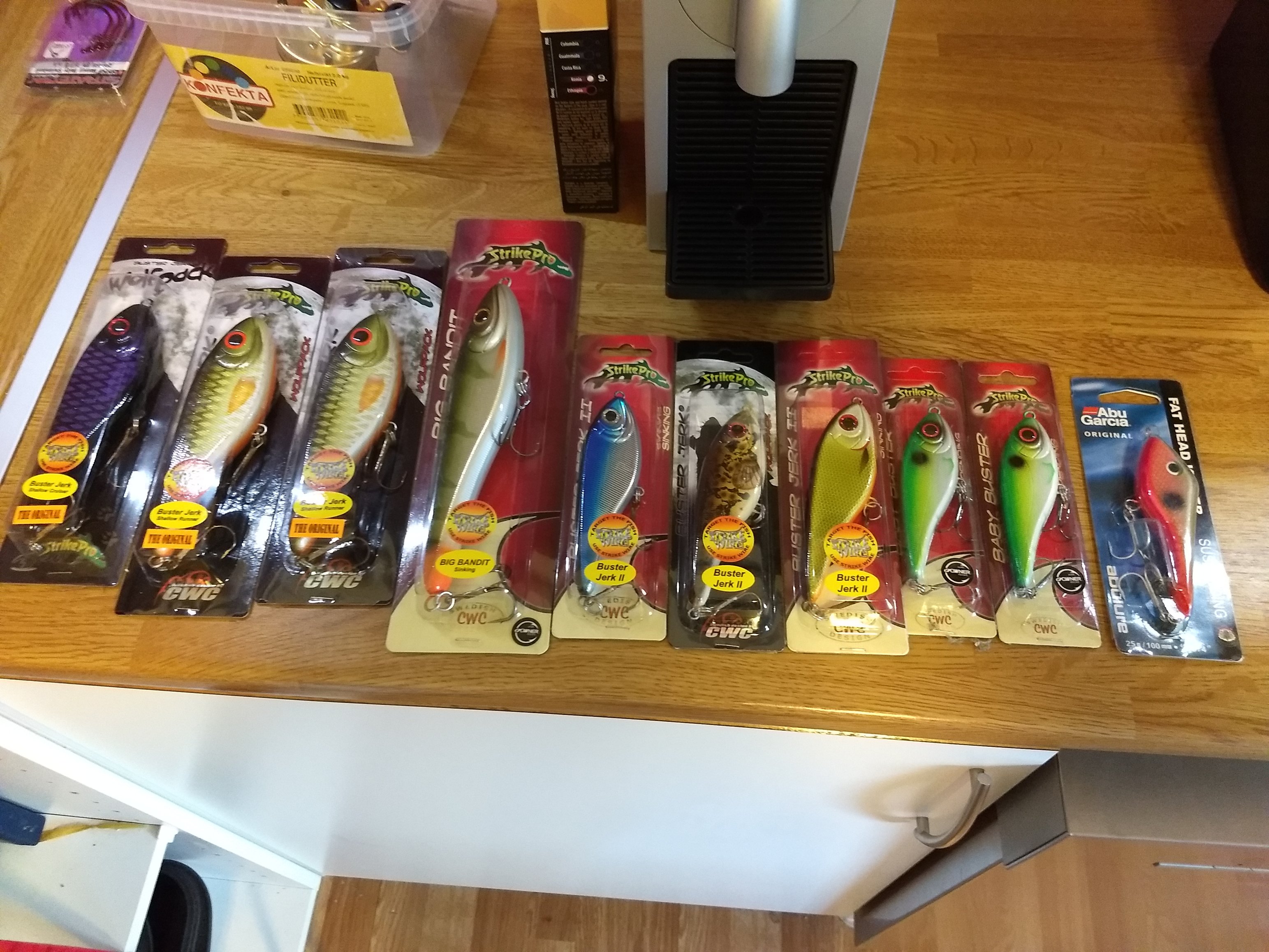 Jag köpte par ABU reflex spinnare i olika färger och en Rapa minnow spoon vass bete som funkar bra till höstgäddan