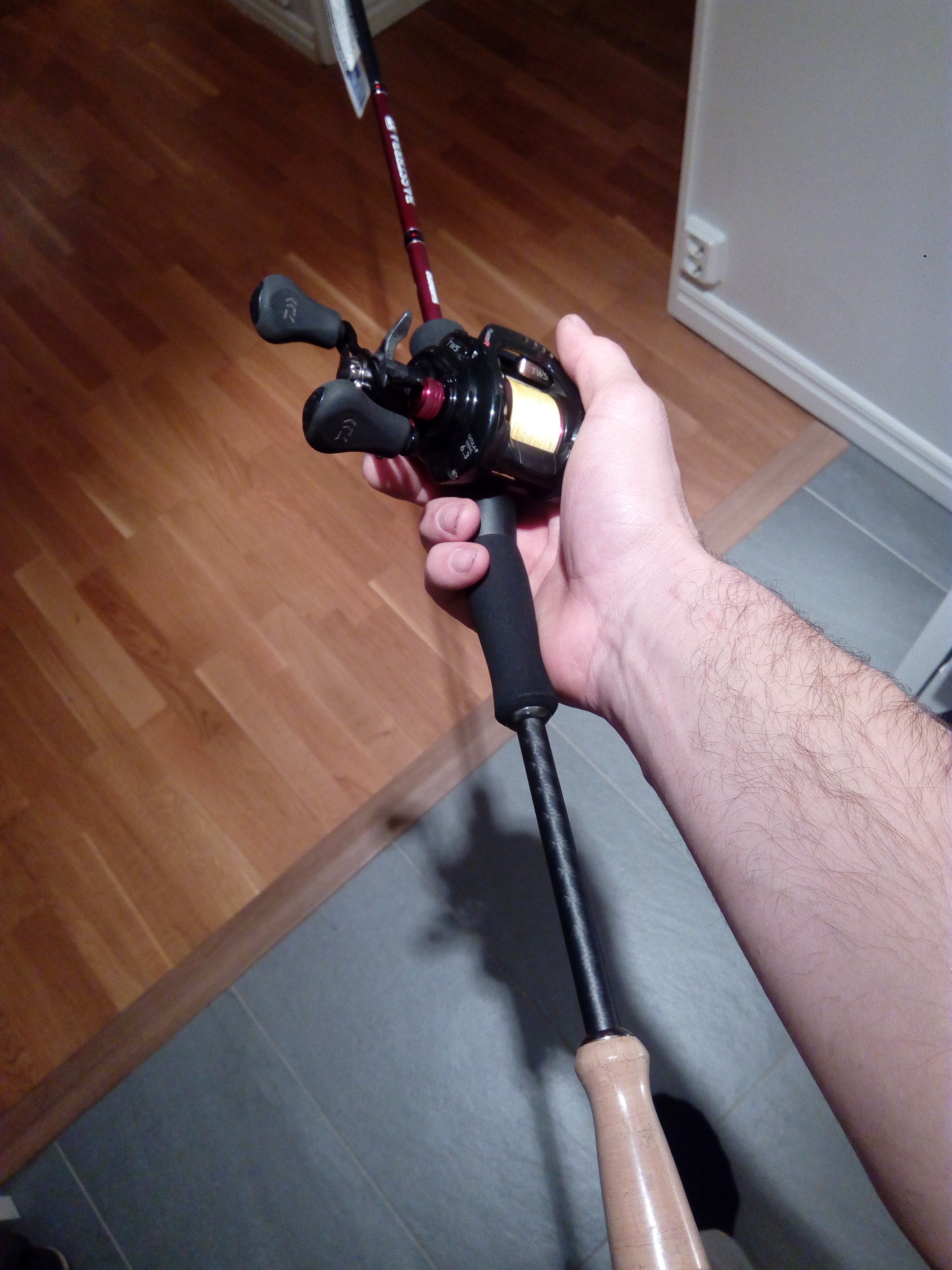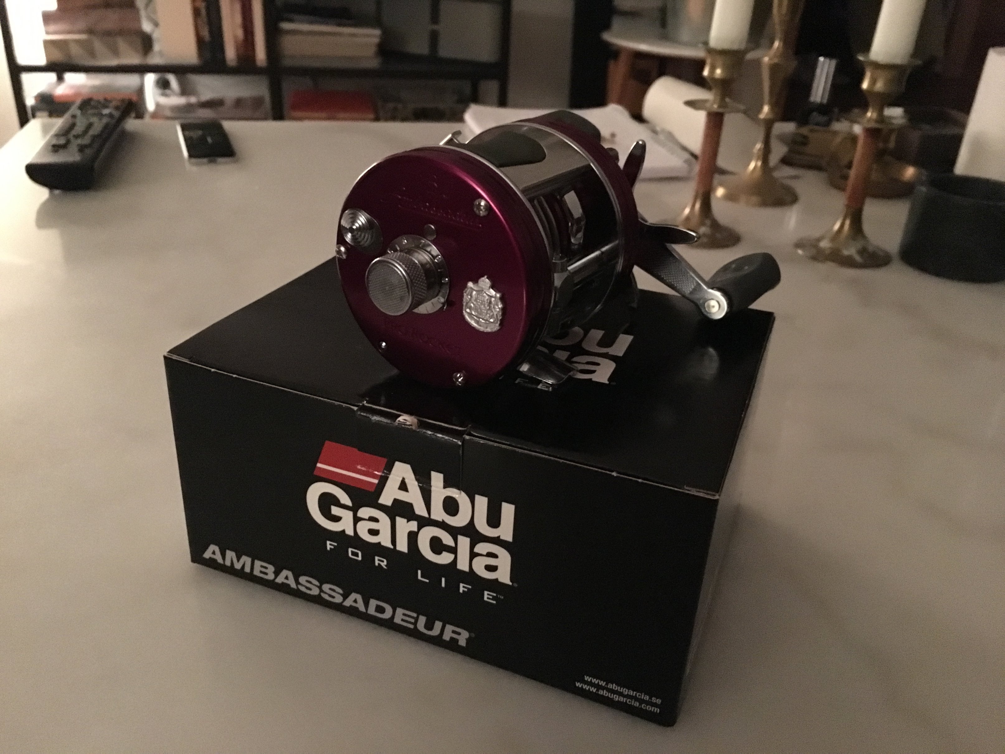 Du har spegelvänt bildenUrsprungligen postat av Gösta Visa inläggÄntligen! Jag har länge vurmat för en röd ProRocket. Och nu står den hos andra röda, betydligt äldre Ambor i skåpet i väntan på provfiske.... Ny med kartong o hela kitet för en betydligt billigare penning än vad ABU föreslår...