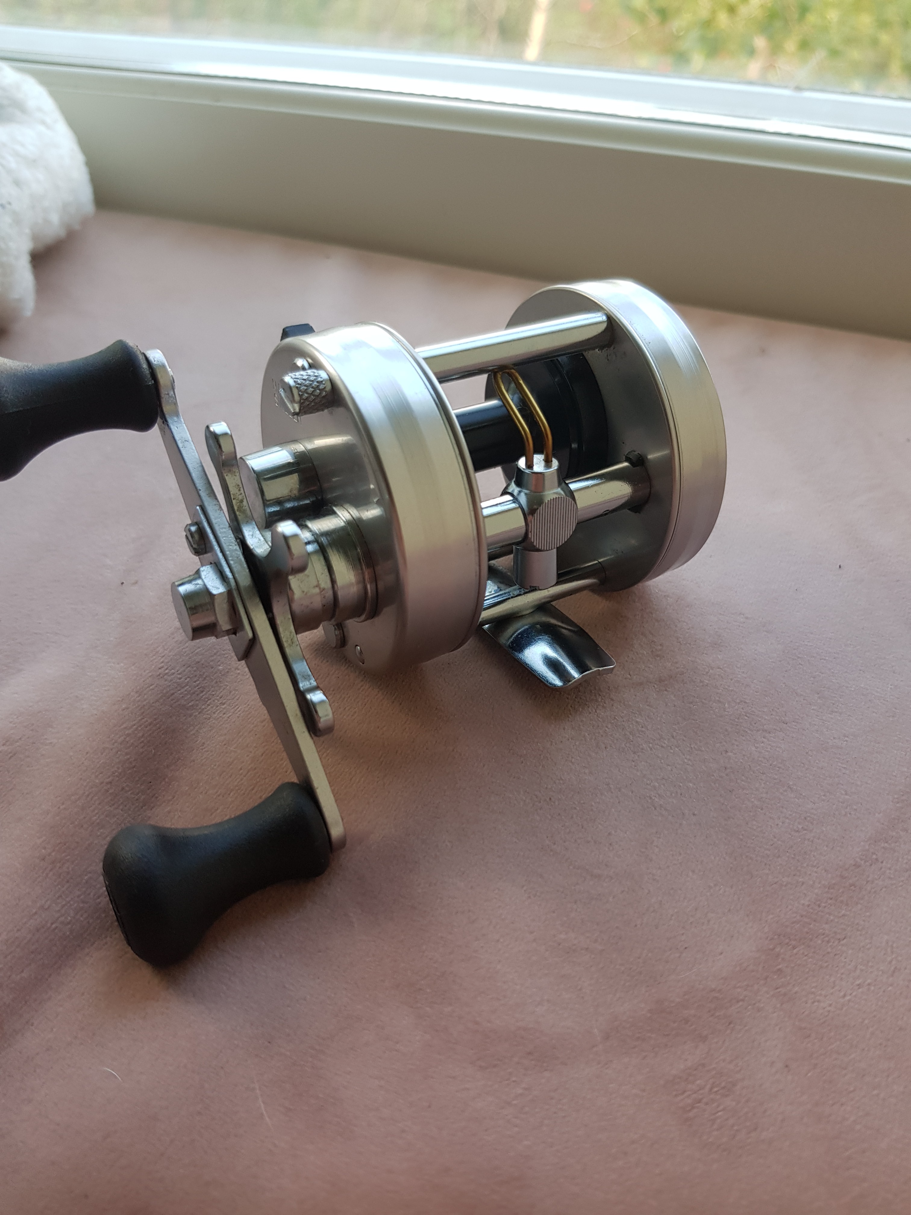 Fick precis hem denna skönhet. Köpte den i princip osedd. Bilden var så suddig så jag köpte verkligen grisen i säcken. Kom som ett paket med en 6500 c4 och två spön. Sa till försäljaren att han kunde behålla spöna så står jag för frakten för rullarna.