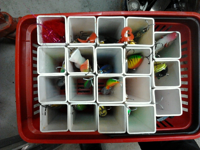 Själv har jag en modell större plaslåda för spinnare,skeddrag å mindre wobblers.